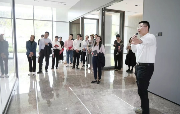 隨后,參訓(xùn)隊(duì)伍走進(jìn)位于陽澄數(shù)谷的SIP集成電路產(chǎn)業(yè)園展廳,深入調(diào)研“黨建鏈+產(chǎn)業(yè)鏈”雙鏈融合的創(chuàng)新實(shí)踐。作為全國集成電路產(chǎn)業(yè)高地,園區(qū)以高質(zhì)量黨建鏈賦能集成電路產(chǎn)業(yè)鏈發(fā)展,通過建立產(chǎn)業(yè)鏈聯(lián)合黨委,推動上下游企業(yè)協(xié)同創(chuàng)新,實(shí)現(xiàn)黨建與業(yè)務(wù)的同頻共振。參訓(xùn)人員邊走邊看,通過工作人員生動的講解,對園區(qū)集成電路產(chǎn)業(yè)的發(fā)展有了更直觀的認(rèn)識。