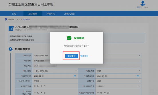 1.3.2. 完善必填的信息并“保存”,保存成功之后點擊“繼續申報”