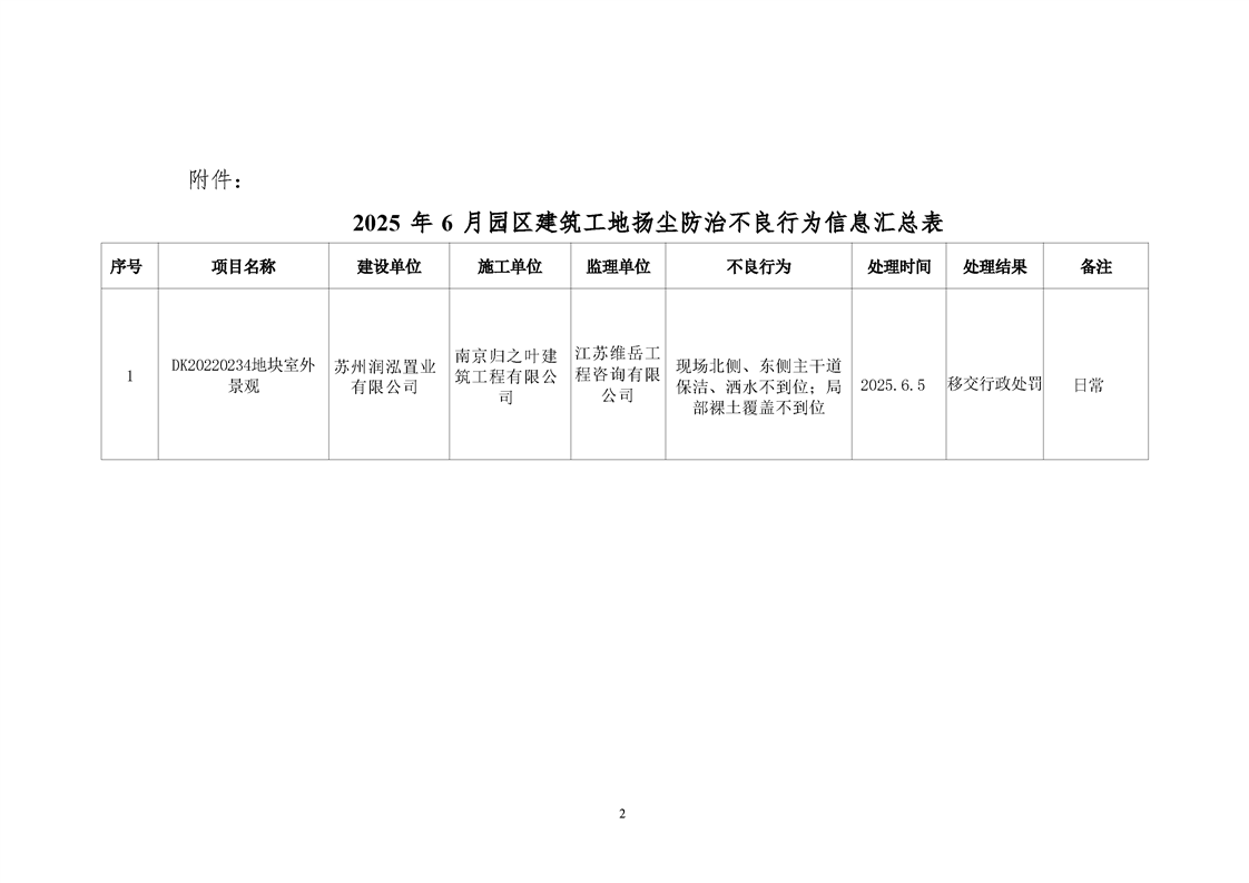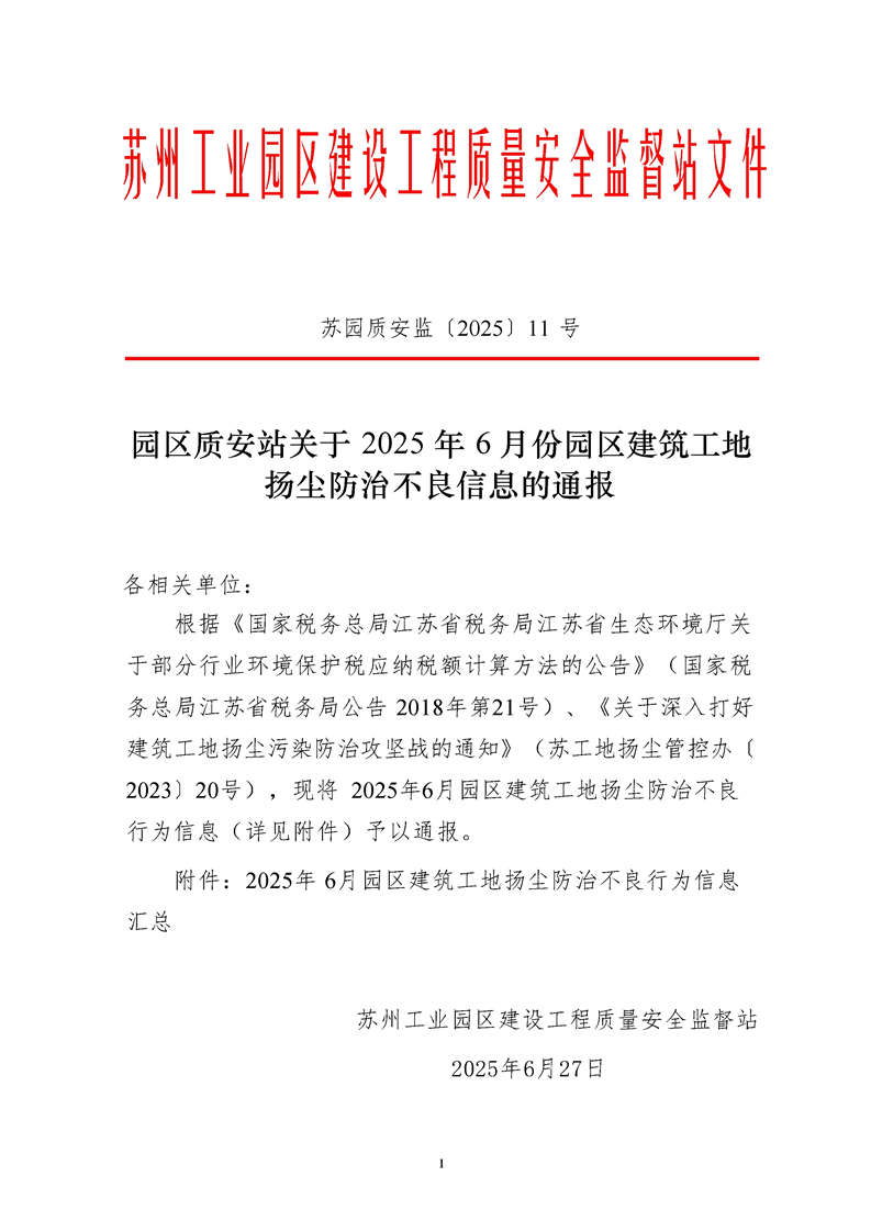 園區(qū)質(zhì)安站關(guān)于2025年6月份園區(qū)建筑工地?fù)P塵防治不良信息的通報(bào)