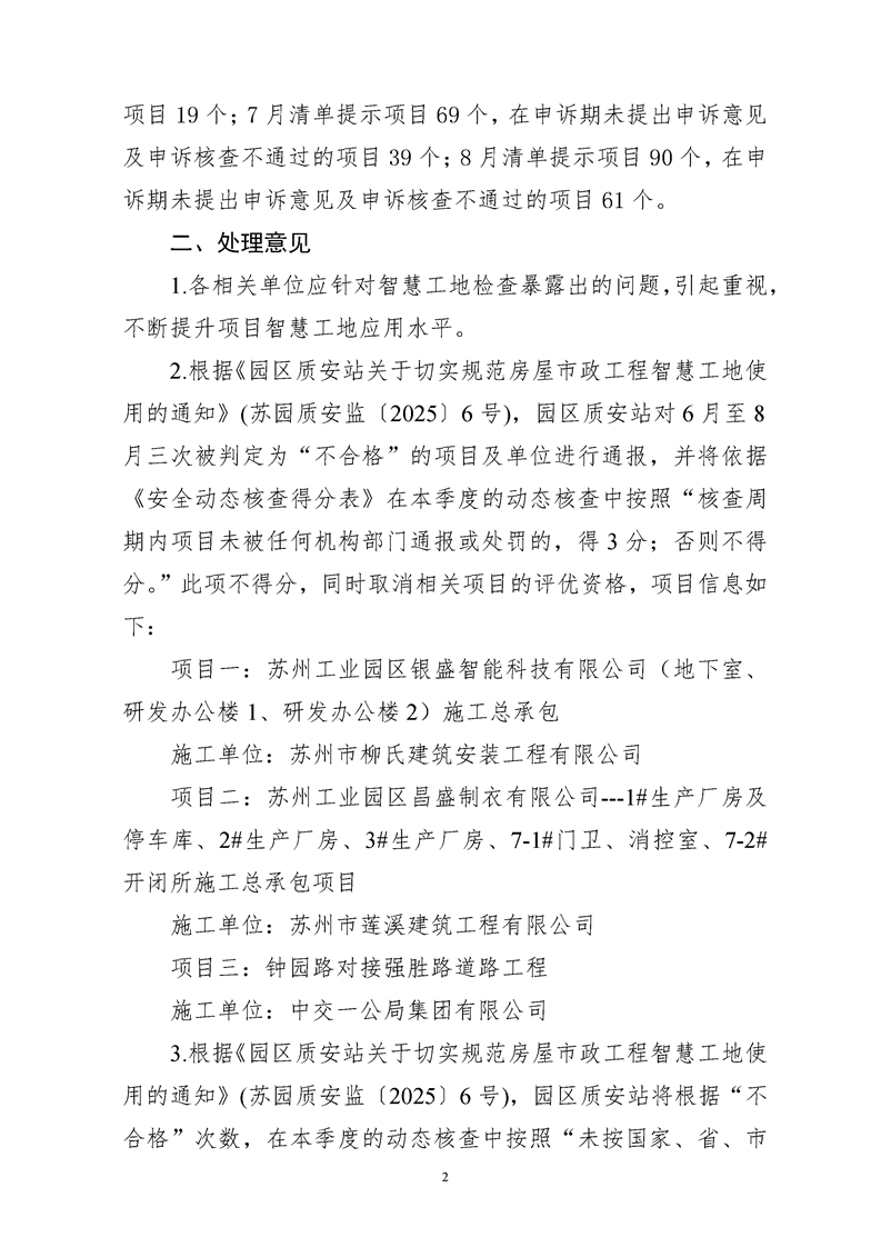 2025年6月至8月智慧工地線上檢查不合格次數統計