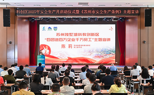 6月4日下午,蘇州獨墅湖科教創新區2025年安全生產月啟動儀式暨《蘇州市安全生產條例》主題宣講在蘇州納米城順利舉辦。科教創新區安委會各成員單位相關負責人、安全生產分聯盟、重點高校、科研院所、樓宇、載體、企業的代表參加活動。