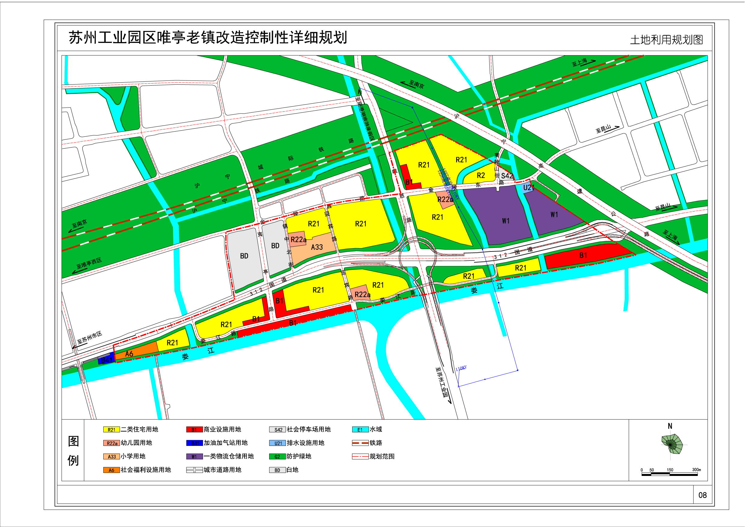 規(guī)劃范圍東至滬寧高速公路,西至園區(qū)二中,南至婁江,北至滬寧城際鐵路,總用地面積約127.6公頃。