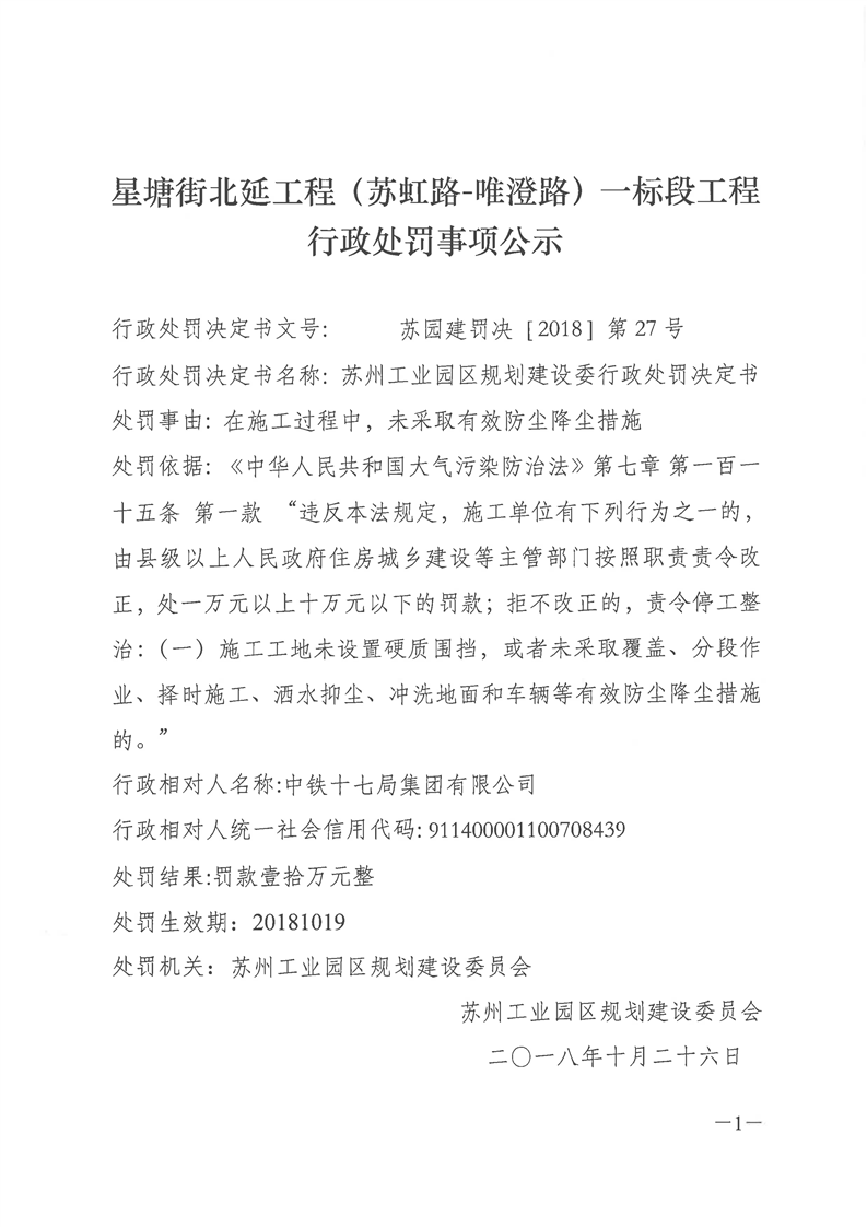 星塘街北延工程(蘇虹路-唯澄路)一標(biāo)段工程行政處罰事項(xiàng)公示