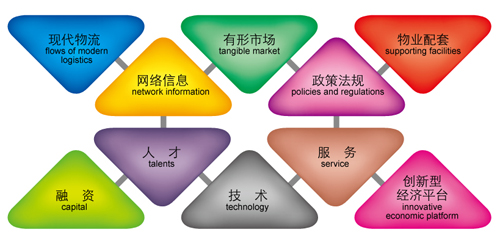 近代物流、インタネットインフォメーション、有形市場(chǎng)、政策法規(guī)、物業(yè)管理、融資、人材、技術(shù)、サービスとクリエート経済プラットフォーム等を內(nèi)容とするソフトウェア産業(yè)に関する「九通一平」プロジェクトは地域情報(bào)化レベルと新興産業(yè)を促進(jìn)できる能力をアップさせる。