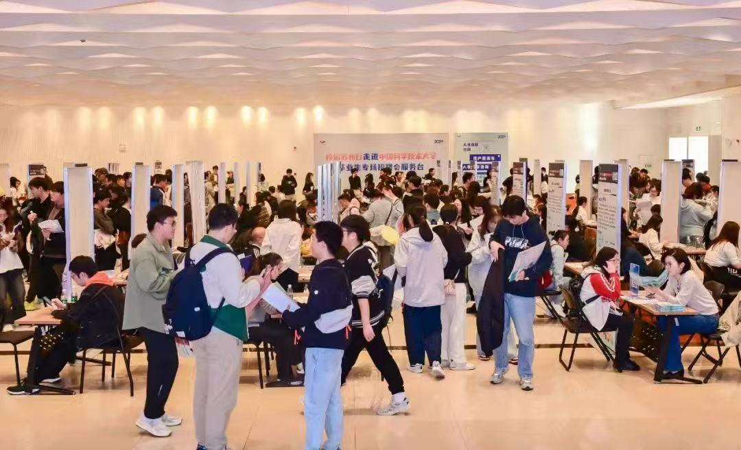 “校園蘇州日”福利多多,展現了蘇州工業園區誠意滿滿的攬才之心。招聘現場人頭攢動、熱鬧十足,中科大學子們懷揣著對江南福地的憧憬,在各自心儀的崗位前駐足交流。