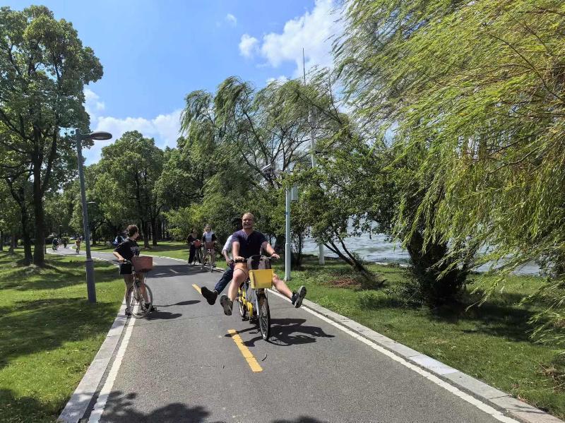 “讓我印象最深的是陽(yáng)澄湖‘Citywalk’活動(dòng)。我們?cè)陉?yáng)澄湖畔騎行,欣賞如詩(shī)如畫(huà)的沿途風(fēng)景,之后還去了重元寺。那天,我深深感受到了園區(qū)自然美景與人文魅力的完美融合,對(duì)我很有啟發(fā)。”范儒安回憶道。