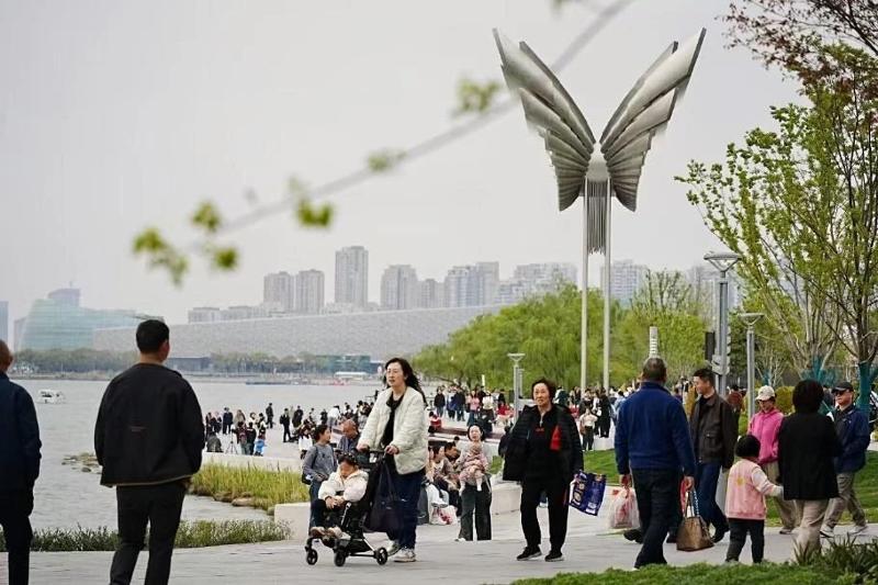 文明是城市的耀眼底色。清明小長假,蘇州城市街頭迎來市民游客交織的熱鬧景象。正是春和景明時,美麗的自然風景是城市給予市民游客的禮物;而漫步城市間,從景區到公共場所,市民游客的文明舉止、禮貌言行則是另一道靚麗風景,彰顯了游人對蘇州的熱愛,成為城市可觸可感的美好記憶。金雞湖右岸,絡繹不絕的人流彰顯出這一新晉“頂流”對市民游客的巨大吸引力。作為蘇州新的城市地標,“蘇州之眼”摩天輪在小長假期間迎來一波“大流量”,其以充滿科技感、現代感的體驗,讓游人感受蘇州的現代發展和浪漫情懷。傍晚時分,來自常州的吳女士一家正有序排隊,等待“登艙”。“前段時間‘蘇州之眼’在小紅書特別火,趁著假期趕緊來打卡,而且特意選擇了可以在摩天輪上看日落的時段。來之前還擔心人多擁擠,但現場大家排隊非常有序,工作人員也很周到熱情,體驗感蠻好的?!迸c“蘇州...