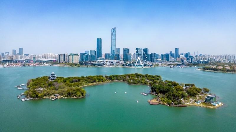 “園區(qū)即景區(qū)”,依托這一發(fā)展理念,園區(qū)的生態(tài)注腳體現(xiàn)在每一座公園、每一個街角和路口。四月初,桃花迎來盛放期,而園區(qū)欣賞桃花的最佳點位,正是眼前這一片湖心綠洲。桃花島占地10公頃,島內(nèi)遍植成百上千株桃花,另有海棠、櫻花、梨花等等。春季登島,看緋云浸染碧波,江南雅韻在眼前幻化成實景。