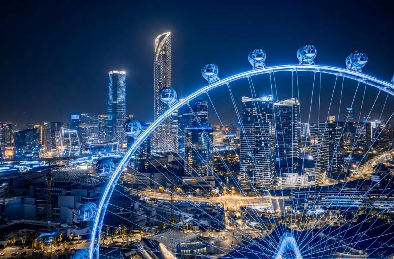 作為金雞湖右岸“4+1”重點建設項目之一,“蘇州之眼”摩天輪是全球第八座回轉式太空艙摩天輪、亞洲最大水上摩天輪,以128米的高度刷新城市天際線,可360度俯瞰金雞湖的壯麗風光。