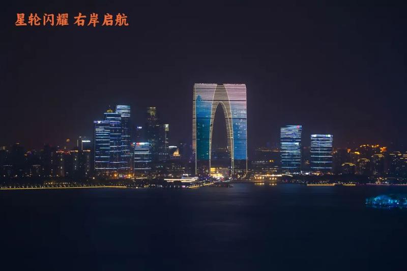 夜游航線——環湖線:串起蘇州文化藝術中心、蘇州中心、東方之門、金雞湖音樂噴泉等標志性景觀,園區繁華夜景盡收眼底。