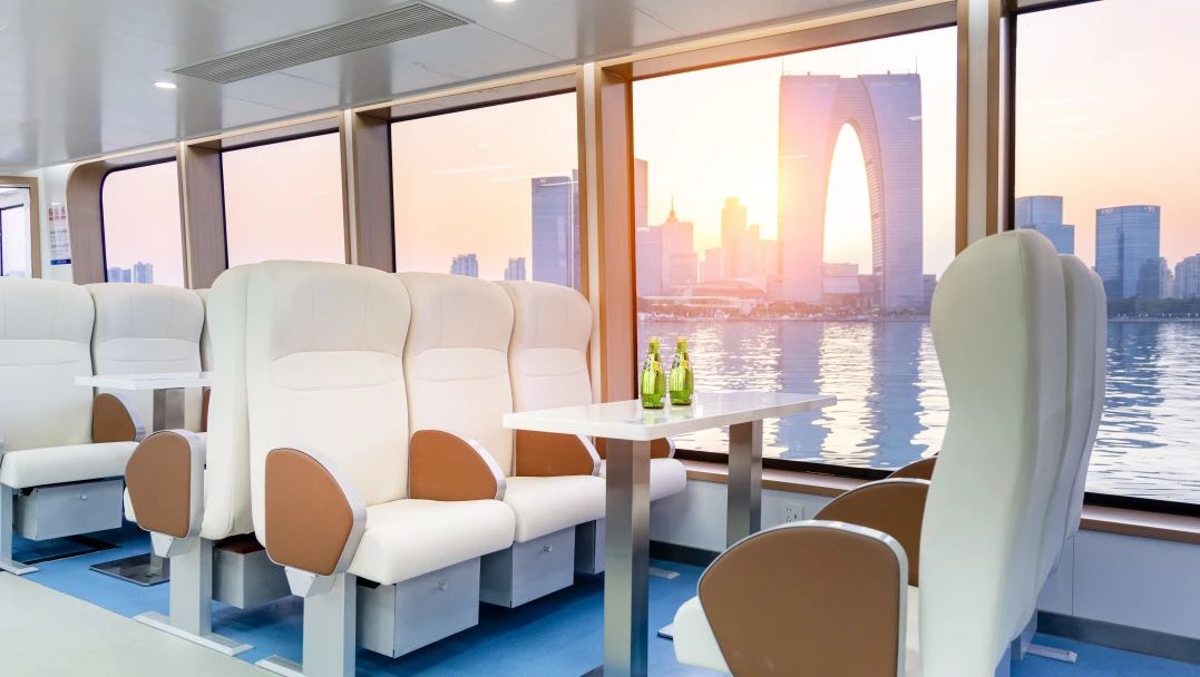 追求文藝范的游客,可搭乘中央河摩登時光漫游航線,開啟一段水岸疊影?CBD徜徉之旅。該船采用太陽能環保親水新能源微游艇,從中央河碼頭出發,途經國金中心、圓融天幕等地標,白天可覽城市活力,夜晚能賞燈光璀璨,一條航線串聯起Young蘇州的現代繁華圖景,還可包船自駕。