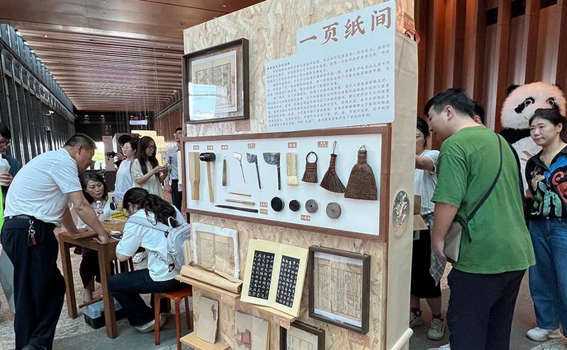 在燦若星河的人類文明中,竹簡、古籍是歷史的見證者,也是文化的承載者。那么面對破損的古籍,又該如何修復、裝幀呢?“一頁紙間”攤位前,古籍修復的“秘密武器”揭開神秘面紗,引得不少市民駐足。而一旁的裝裱區,正有市民在古舊書畫修復裝裱傳承人劉洪波的指導下,體驗著線裝的魅力。“蘇裱技術在北宋時期已基本成型,傳承至今已經成為裝裱藝術四大流派之一!”在劉洪波看來,守護古籍,就是守護閱讀和傳承,將修復、裝裱技藝融入全民閱讀系列活動,也讓市民通過閱讀的延伸,與傳統文化、傳統技藝更加親近。