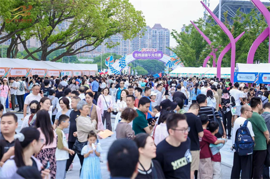 賽事現(xiàn)場(chǎng),“華夏同心集”搭建起民族多彩文化交流的平臺(tái),集市包含園區(qū)公共文化中心“FUN承非遺”金雞湖龍船市非遺文化體驗(yàn)展位、688藝術(shù)潮流公園市集、“龍舟有好市”民族美食市集;市集活動(dòng)整體涵蓋非遺、文創(chuàng)、音樂(lè)書(shū)籍、美食等展商。金雞湖端午龍舟賽作為集民俗文化、競(jìng)技賽事、文旅消費(fèi)于一體的綜合性活動(dòng),在文化傳承與創(chuàng)新融合的推動(dòng)下,打造多樣化“龍舟經(jīng)濟(jì)”消費(fèi)新場(chǎng)景。
