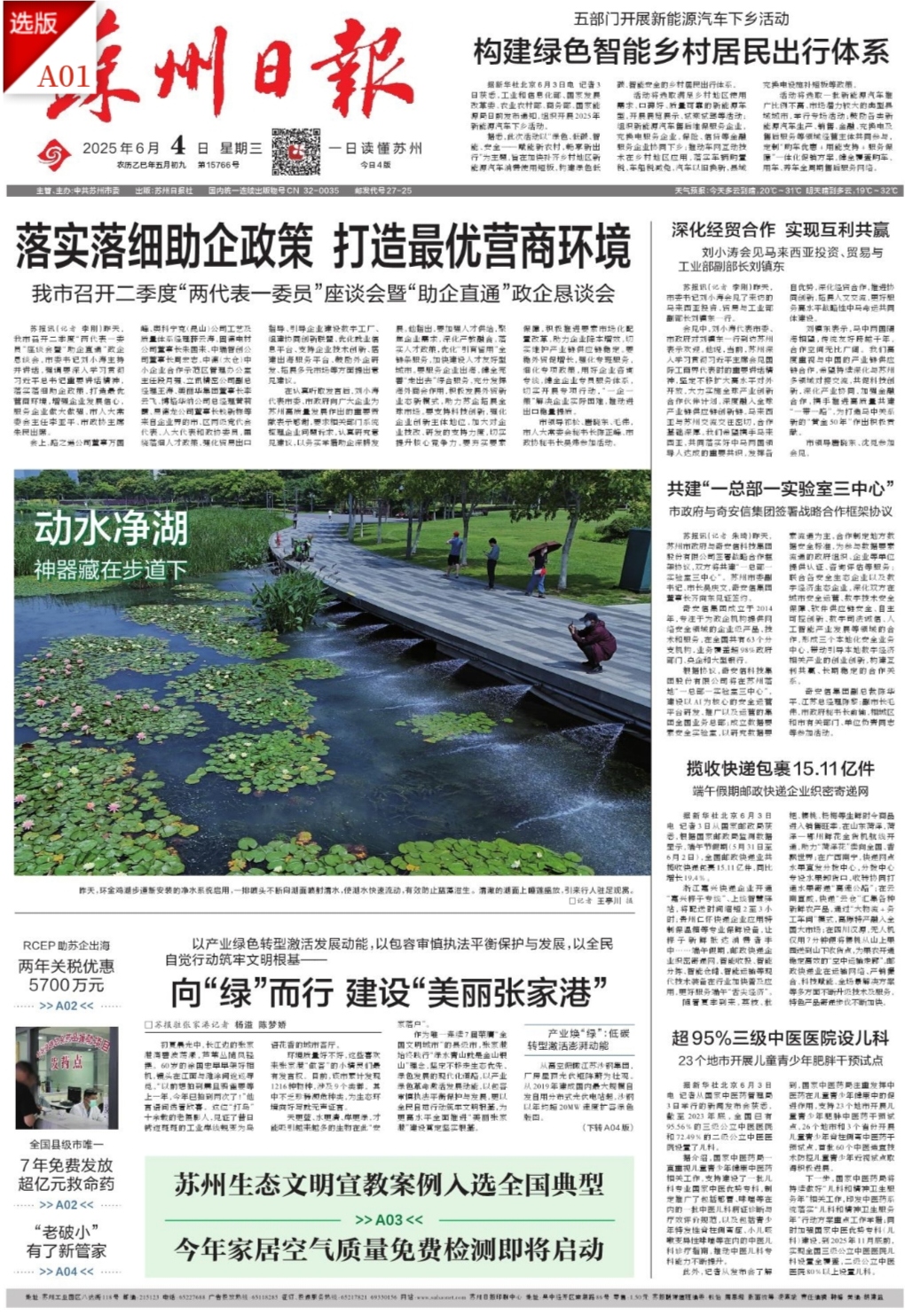 昨天,環金雞湖步道新安裝的凈水系統啟用,一排噴頭不斷向湖面噴射清水,使湖水快速流動,有效防止藍藻滋生。清澈的湖面上睡蓮盛放,引來行人駐足觀賞。