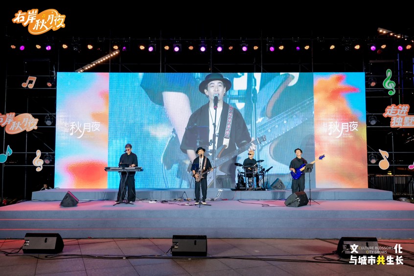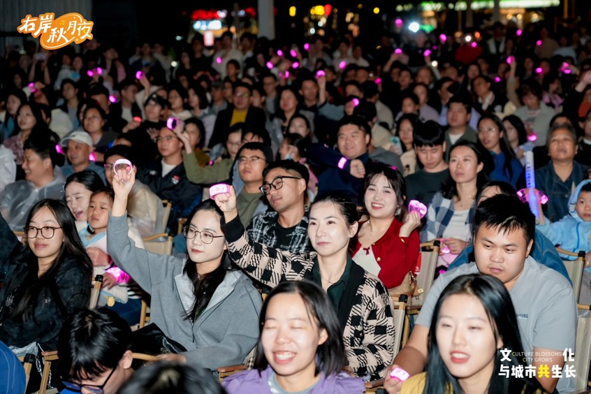 當(dāng)晚的“右岸秋月夜”歌單,滿是秋的詩(shī)意與青春的朝氣,裹挾著蓬勃熱意感染全場(chǎng)。粵語經(jīng)典《紅日》一響,瞬間點(diǎn)燃現(xiàn)場(chǎng)熱情;《戀愛ing》《小情歌》等曲目則以青澀旋律喚起共鳴。流行樂隊(duì)、實(shí)力唱將、素人歌手輪番登場(chǎng),帶著對(duì)音樂的熱愛為演出注入鮮活能量。一首首經(jīng)典曲目引發(fā)觀眾頻頻揮手合唱,手中的手環(huán)燈光閃爍交織,宛如一片璀璨星海,將獨(dú)墅湖的秋夜點(diǎn)綴得格外浪漫。