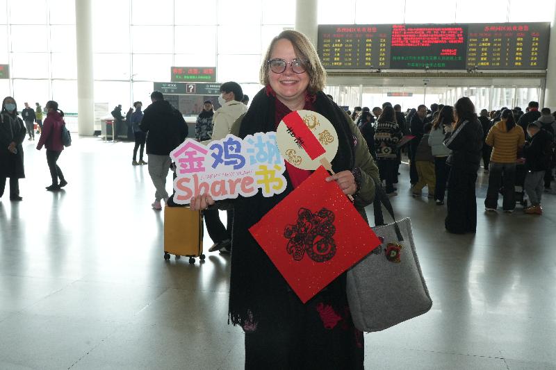 在園區(qū)公共文化中心舉辦的“非遺賀新春潮趣過(guò)大年”春風(fēng)行動(dòng)現(xiàn)場(chǎng),書(shū)法、拓印等傳統(tǒng)文化展示體驗(yàn)吸引了許多市民圍觀,Karolina Pawlik也是其中之一。“我對(duì)中國(guó)的拓印、書(shū)法很感興趣,還專門研究過(guò)。現(xiàn)場(chǎng),工作人員演示上墨、鋪紙、拓印等環(huán)節(jié),人們?cè)诘却谱鞯倪^(guò)程中,可以感受到非遺傳承的深厚底蘊(yùn)。我能在火車站看到非遺的展示、制作,覺(jué)得非常驚喜和感動(dòng)。”