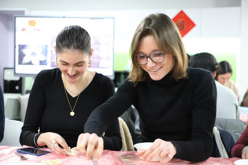 新春佳節(jié),美食是必不可少的一環(huán),而餃子則是春節(jié)代表性食物之一。春節(jié)前夕,SKEMA商學(xué)院蘇州校區(qū)組織了一場(chǎng)包餃子活動(dòng)。來(lái)自法國(guó)、俄羅斯、喀麥隆等國(guó)家的40名留學(xué)生齊聚一堂,體驗(yàn)味蕾上的“中國(guó)風(fēng)”。“來(lái)到園區(qū)還不到一個(gè)月,我就體驗(yàn)了包餃子,太幸運(yùn)了!一開(kāi)始,我覺(jué)得包餃子有點(diǎn)難,我不太會(huì)把餃子皮捏緊,但熟練之后就好多了。我們包了豬肉餡、韭菜餡的餃子,非常美味。”來(lái)自意大利的Anna Martinato說(shuō)。提及中國(guó)春節(jié),Anna Martinato表示,這是一個(gè)非常有名的節(jié)日,她了解貼春聯(lián)、舞龍舞獅、放鞭炮等傳統(tǒng),但今年才第一次有機(jī)會(huì)感受。“蘇州被稱為‘東方威尼斯’,我對(duì)蘇州的印象非常好,在這里學(xué)習(xí)、生活也非常便利。春節(jié)期間,我在蘇州看到了很多春節(jié)獨(dú)特的裝飾,園區(qū)的商場(chǎng)、街道節(jié)日氛圍濃厚,我非常開(kāi)心在這里過(guò)年。”