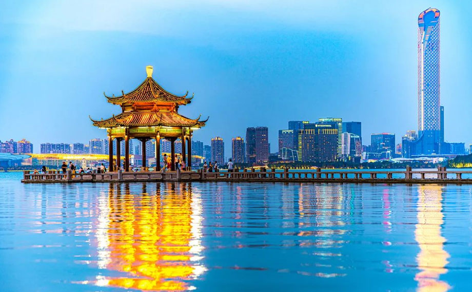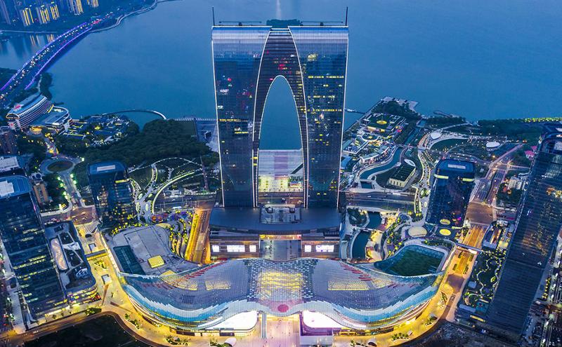 從東環(huán)路轉(zhuǎn)金雞湖大道,再向北進入星港街,園區(qū)的現(xiàn)代繁華撲面而來。金雞湖天虹、蘇悅廣場、星悅匯、蘇州中心商場等商貿(mào)載體集聚湖西。其中,星悅匯是二次元愛好者的天堂,蘇州中心商場更是市民游客不可錯過的城市打卡地之一。