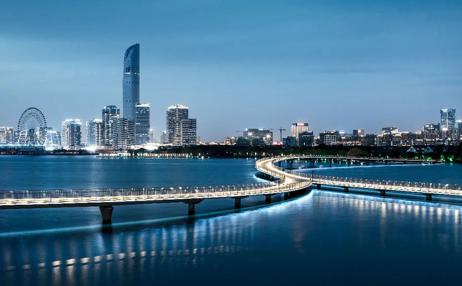 沿著賽道,金雞湖這顆城市明珠熠熠生輝。這里不僅有蘇州文化藝術(shù)中心、誠品生活蘇州等文化地標,還有飛翔雕塑、環(huán)湖驛站等新晉網(wǎng)紅,更能一探“蘇州之眼”、蘇州當代美術(shù)館的芳容。