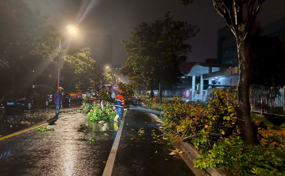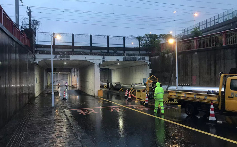 當(dāng)晚,市政服務(wù)集團累計出動人員1340人次、車輛435車次,排查城市道橋、涵隧及附屬設(shè)施56處,及時清理積水點、疏通雨水篦子、處置倒伏樹木及斷枝,及時保障環(huán)湖、地庫等信號、防護措施落地落實,通過技防加人防,確保全區(qū)道橋涵隧、泵站閘口安全有序運行。