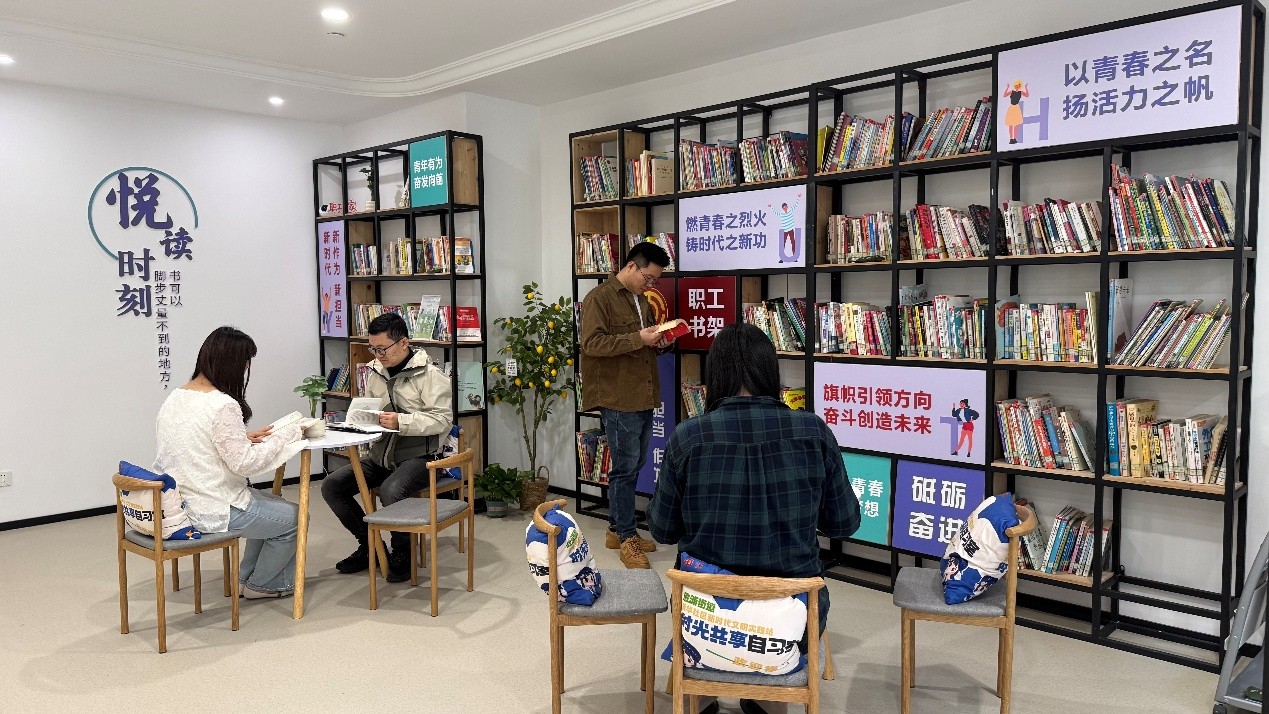 充足的空間是居民參與社區生活的前提,科學的功能規劃將為黨群陣地注入靈魂。社區與園區恒泰合作,將空置的13幢二樓打造成“青年自習室”,以滿足青年職業能力提升和考證考研的需求。“這里比家里安靜,學習氛圍特別好,更容易專注?!泵刻熳粤暿乙婚_放,剛畢業的小徐就帶著書本來占座位學習。黨群服務中心的改造則側重于完善綜合服務功能。社區融合“職工之家”定位,以青春雅致的氛圍營造,將黨群區域按功能劃分,滿足居民社團活動、閱讀休閑、青年夜校等多種需求,將其打造成一個居民樂于光顧、便于訪問的“暖心巢”。讀書會、瑜伽課、桌游派對等符合年輕人喜好的活動每天晚上都在這里舉辦。