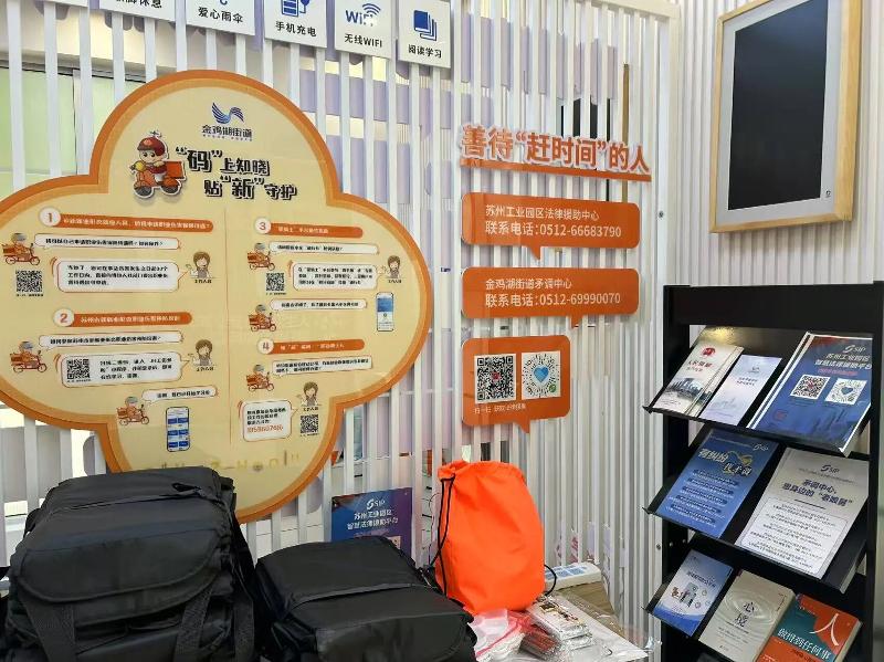 街道以需求為導向,推動普法從“單向”向“雙向”轉型。結合本年度農民工學法活動周、民法典宣傳月、安全生產月、暑期送清涼等重要節點,發動社區開展集中普法宣傳6批次,累計發放普法資料2000余份。通過微信群、公眾號等線上渠道,推送街道自制《新就業形態勞動者權益保護普法手冊》、調解宣傳案例等實用信息,不斷豐富學法途徑。同時,鼓勵騎手化身“流動普法員”,通過在外賣箱上貼法治標語等形式,營造“流動”普法氛圍。此外,依托“城市新客廳”及太平金融大廈“星”騎士加油站等暖“新”驛站增設“學法圖書角”,擺放《人民調解服務指南》《外賣行業法律風險防范手冊》等材料,供新就業群體在工作休息之余隨手翻閱、隨時取用。