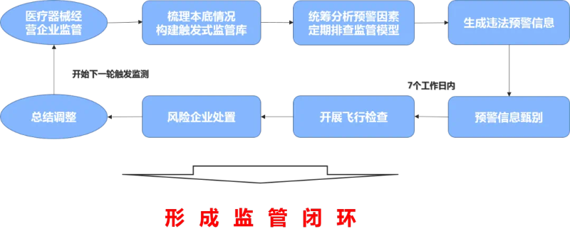 依據“風險管理、全程管控、社會共治”原則,綜合考慮日常監管實際、企業經營情況、年度工作計劃等因素,確定醫療器械經營企業預警觸發條件,主要包括被立案調查或有外單位案件移送、協查的;涉及投訴、舉報、信訪,并查實存在違法違規情況的;有監督抽檢結果不合格的;被列入嚴重違法失信名單的等10種情形。