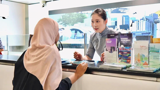 The service center is seamlessly connected to the Suzhou City Terminal of Shanghai Airport Authority (AVINEX) in SIP to form a “bi-directional service loop” for international passengers looking to tour Suzhou.